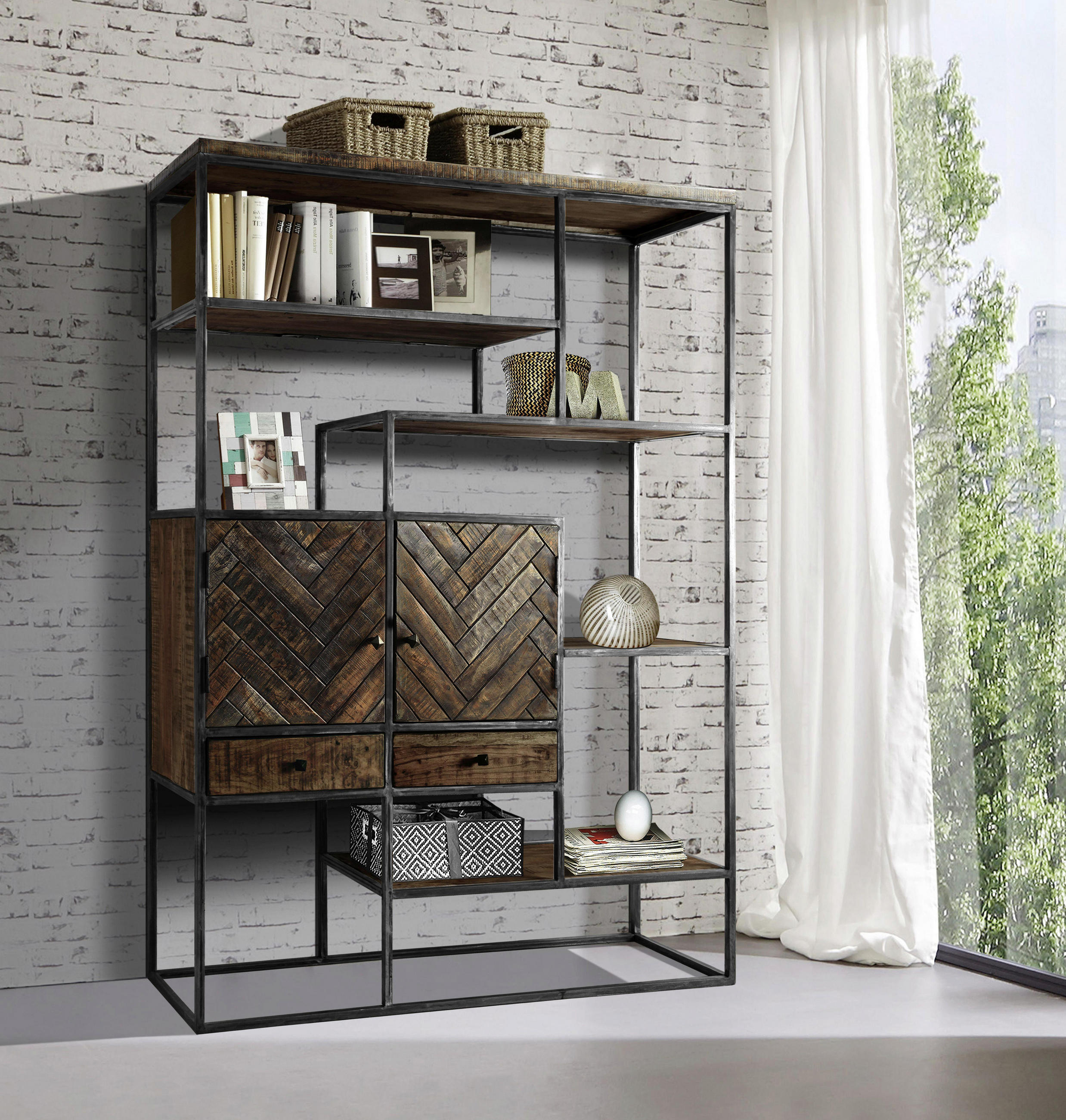 Landscape esstisch akazie massiv rechteckig grau braun holz metall 90x77x180 cm 565 71.